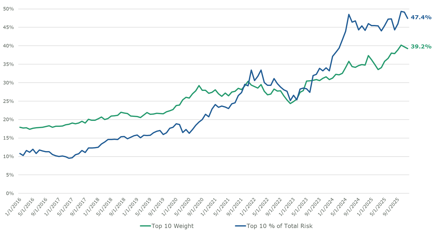 S&P 500 Index Top 10 Stocks as % of Total Risk