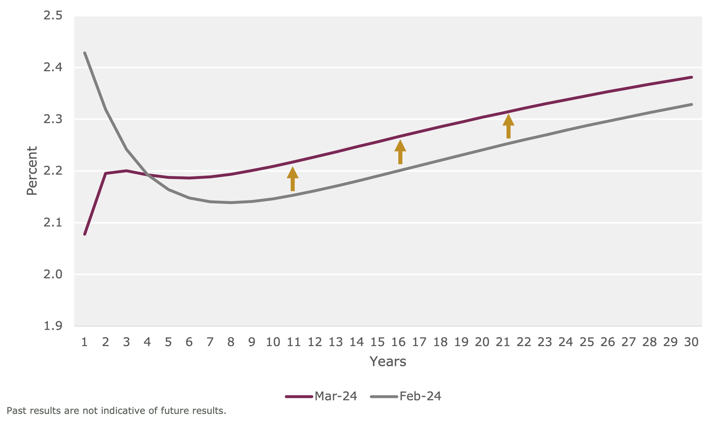 Uneven inflation indicators and corresponding rising interest rates were key in rising inflation expectations this quarter (Figure 2). The potential for sticky inflation, coupled with the likelihood of higher interest rates, poses challenges and opportunities within equity markets, prompting investors to seek strategies that can navigate these changing tides.