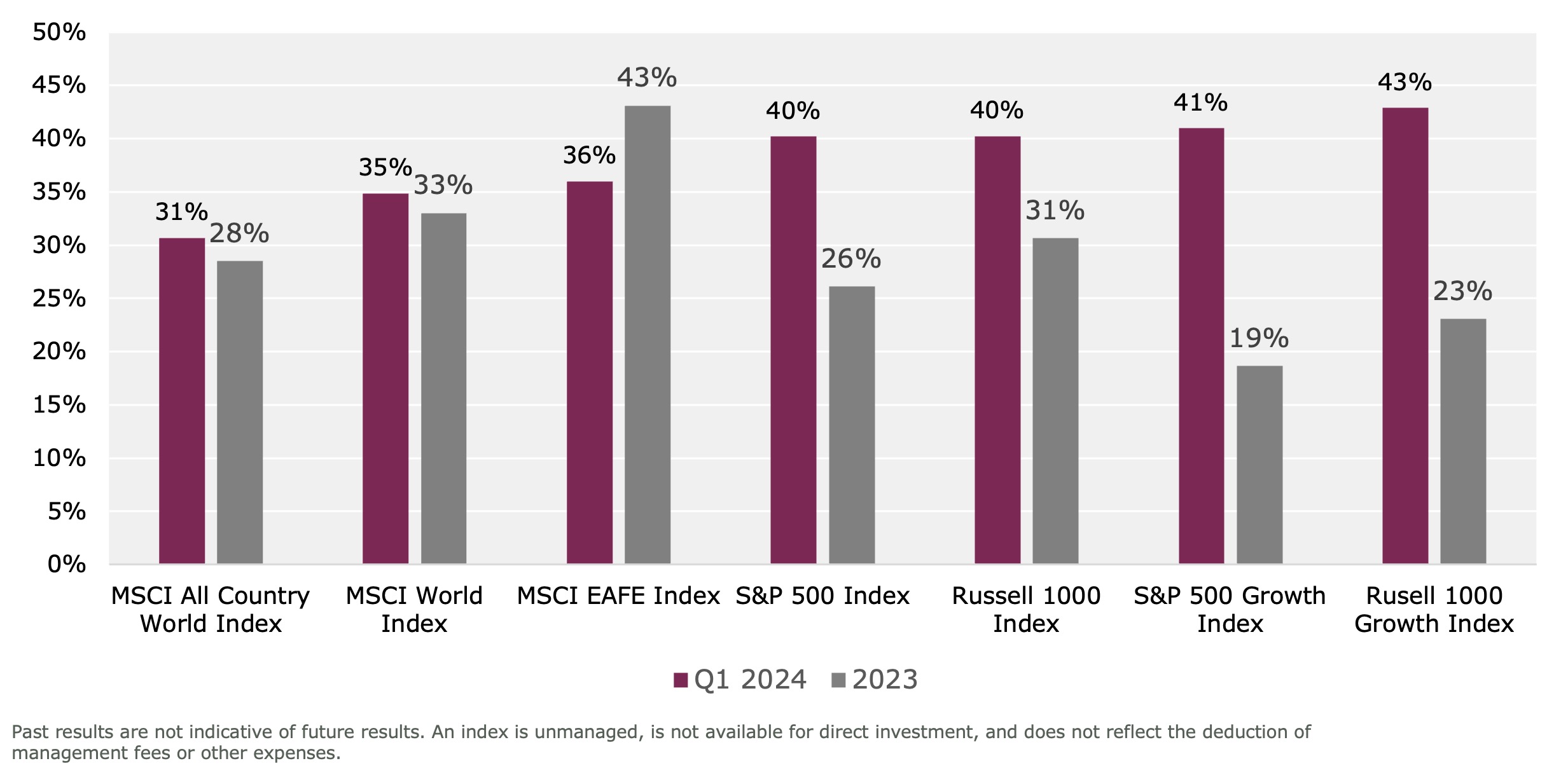 FIGURE 4: PERCENTAGE OF STOCKS OUTPERFORMING – Q1 2024 vs. 2023