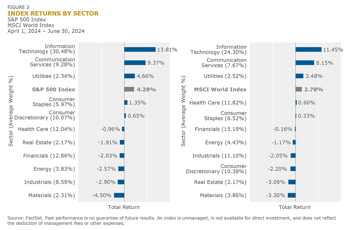 The second quarter of 2024 showcased a rebound in global equity markets, driven by optimism surrounding potential Federal Reserve rate cuts and the strong performance of AI-related stocks. Despite this positive momentum, market breadth narrowed significantly, and sector performance was highly divergent. Looking ahead, while broader market participation is anticipated, several risks and challenges remain.